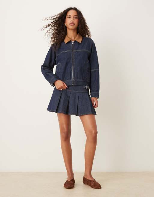 Abercrombie & Fitch denim contrast collar barn jacket in indigo wash
