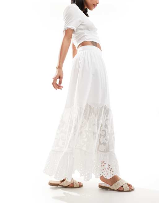 Abercrombie & Fitch eyelet tiered linen maxi skirt in white
