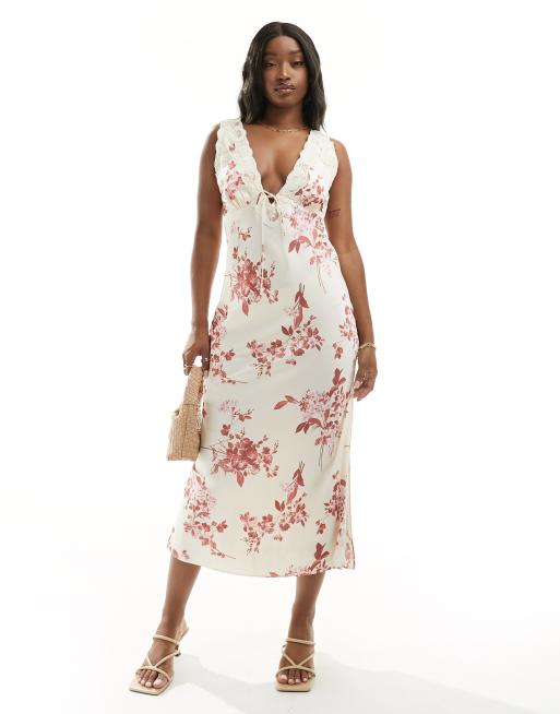 Abercrombie & Fitch floral lace midi slip dress in cream