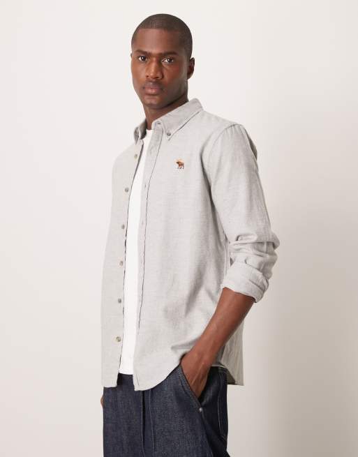 Abercrombie & Fitch herringbone shirt with icon logo in grey