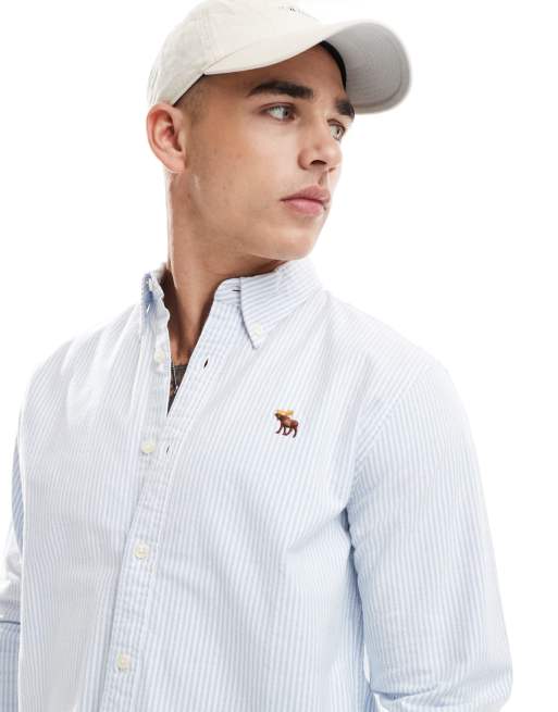 Abercrombie & Fitch icon logo stripe oxford shirt in light blue