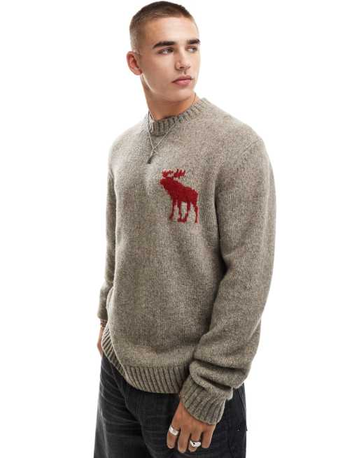 Abercrombie & Fitch instarsia icon logo fuzzy knit jumper in brown marl