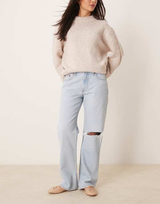 Abercrombie & Fitch low rise baggy fit jean with busted knee in light wash