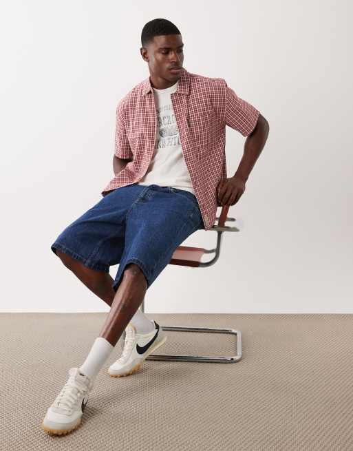 Abercrombie & Fitch oversized short sleeve shirt in red micro check