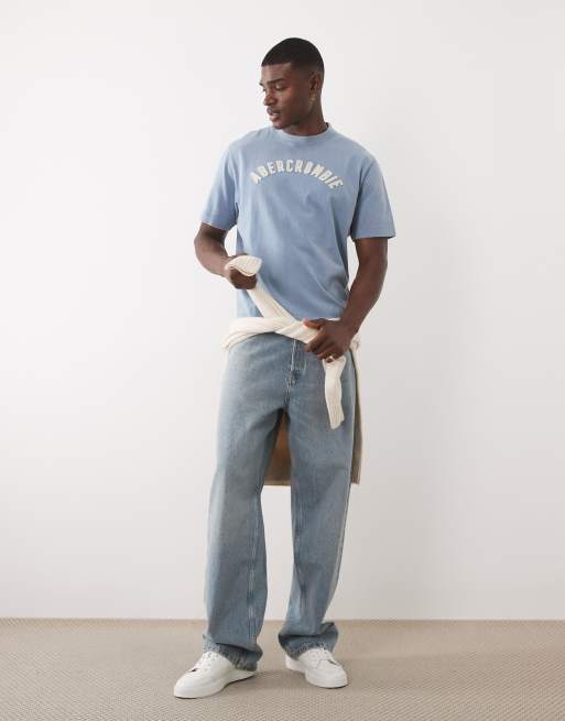 Abercrombie & Fitch patch logo t-shirt in light blue