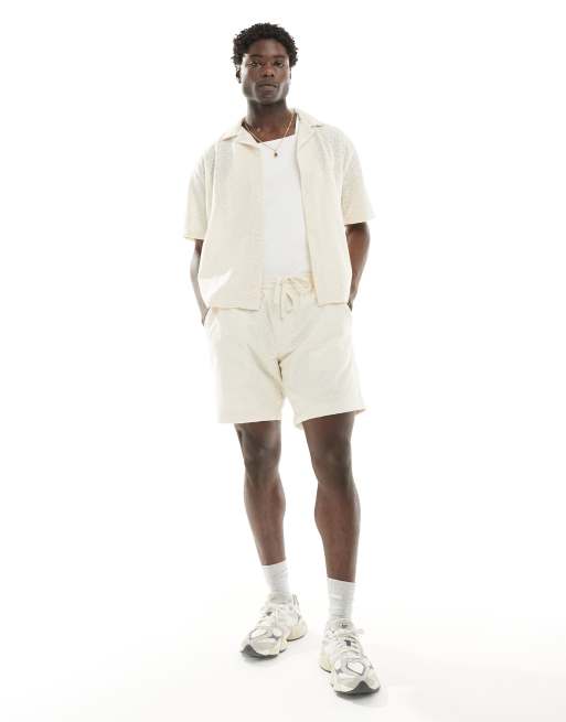 Abercrombie & Fitch pull on relaxed fit lace shorts in cream co-ord