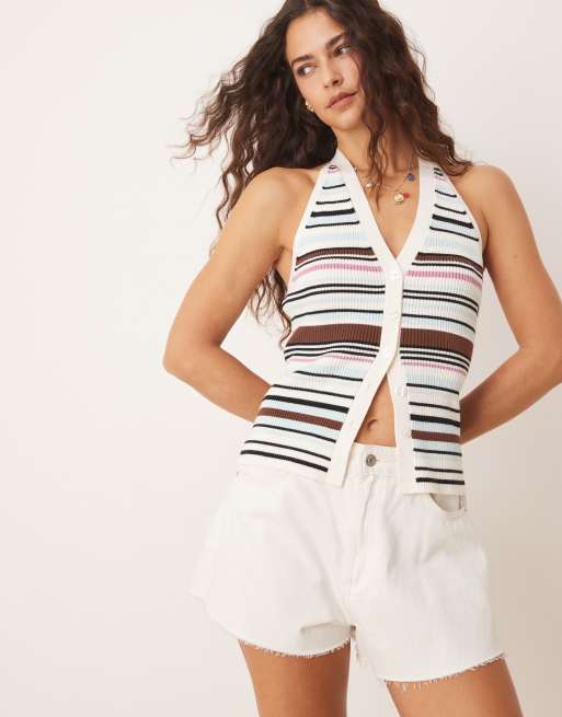 Abercrombie & Fitch ribbed halter neck vest in multi stripe