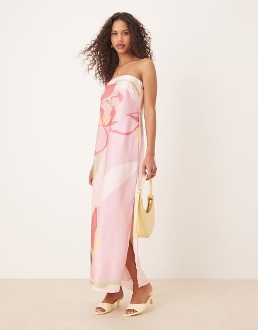 Abercrombie & Fitch satin strapless maxi dress in pink floral