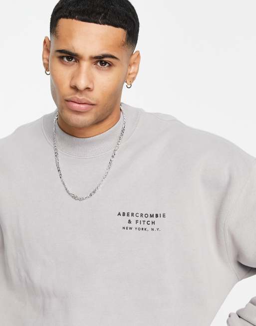 Abercrombie & Fitch shadow logo raised neck crewneck sweatshirt in brown