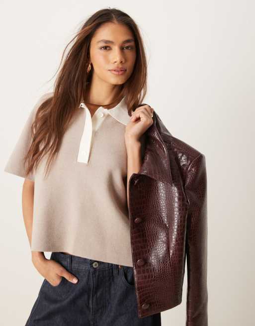 Abercrombie & Fitch short sleeve preppy knit contrast polo tee in cream
