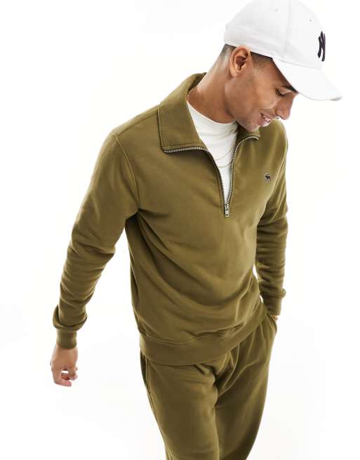 Abercrombie & Fitch silicone icon logo french terry half zip sweatshirt in olive green co-ord