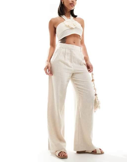 Abercrombie & Fitch Sloane linen blend high waisted trouser in beige