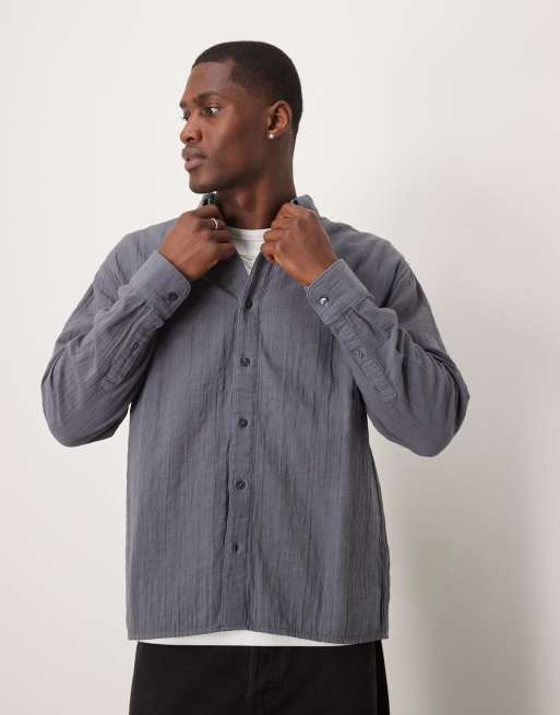 Abercrombie & Fitch textured long sleeve relaxed shirt in navy
