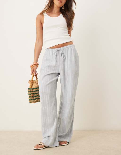 Abercrombie & Fitch wide leg linen blend pull on tie trousers in blue stripe