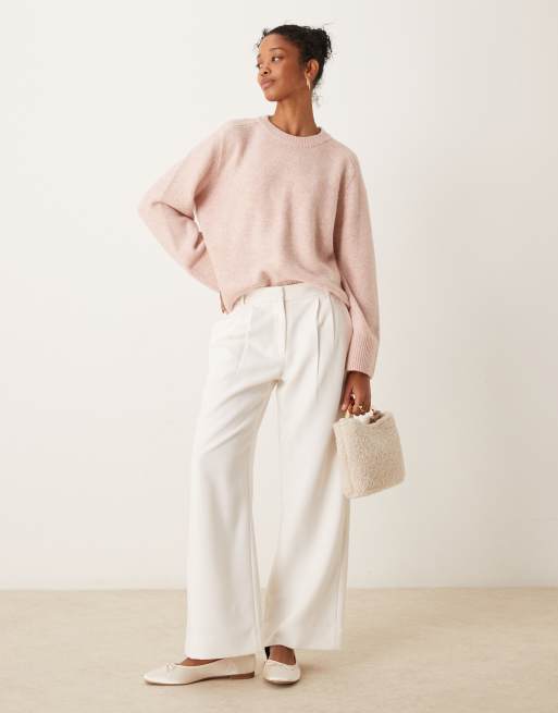 Abercrombie & Fitch wide leg tailored trousers in cream