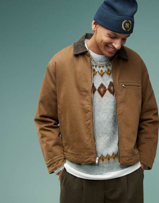 Abercrombie & Fitch workwear cropped washed zip front jacket in brown