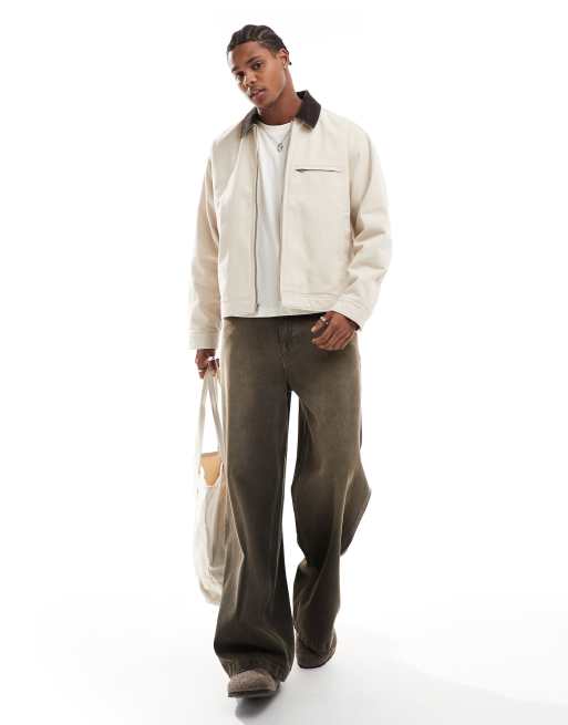 Abercrombie & Fitch workwear cropped washed zip front jacket in stone