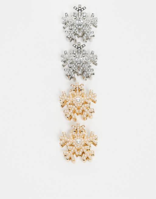 Accessorize 4 pack snowflake christmas sparkle hair claw clips in gold and silver