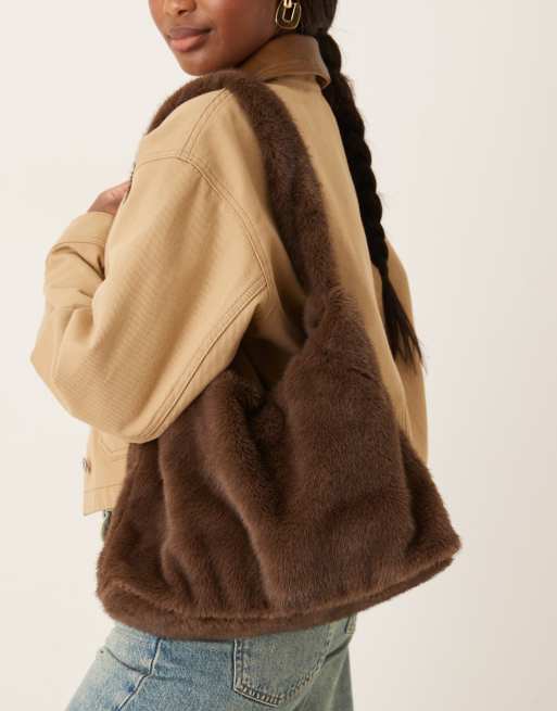 Accessorize faux fur shoulder bag in chocolate