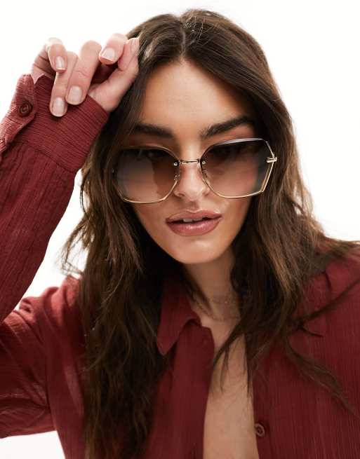 Accessorize oversized square metal sunglasses in gold