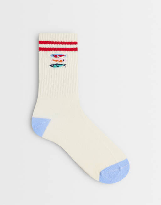 Accessorize sardine varsity socks in cream