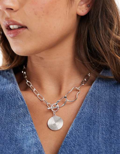 Accessorize sterling silver plated chunky disc chain necklace in silver