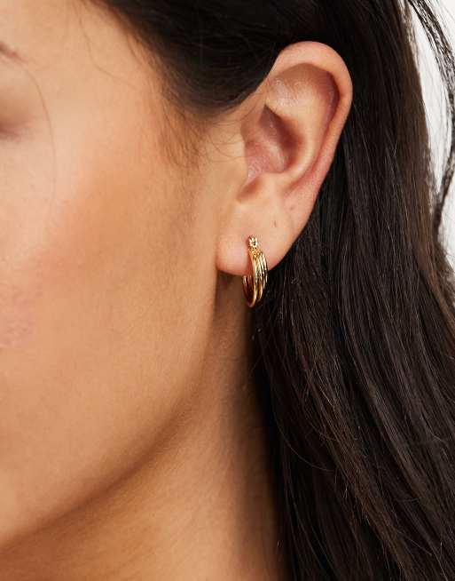 Accessorize Z collection gold plated ridge hoop earrings in gold