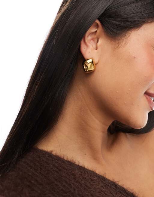 Accessorize Z stainless steel gold plated button stud earrings in gold