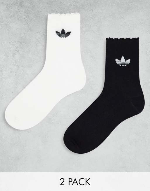 adidas Originals 2 pack ruffle socks in black and white