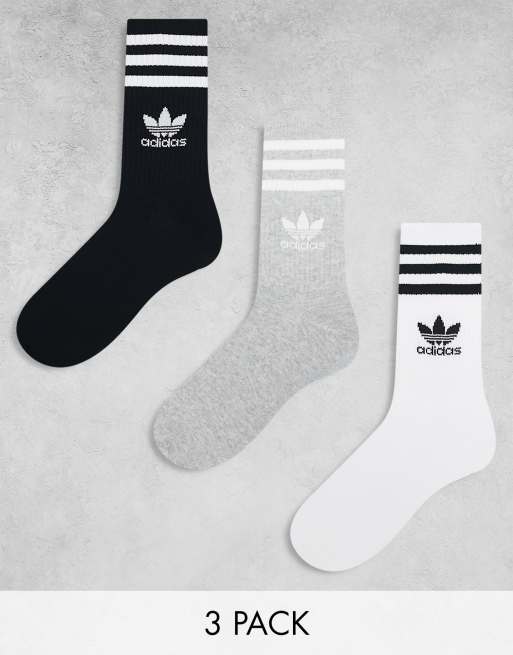 adidas Originals 3 pack mid cut crew socks in white/grey/black