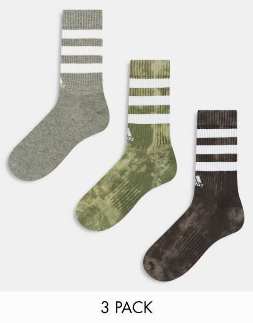adidas Originals 3-stripe socks in washed grey, khaki and brown