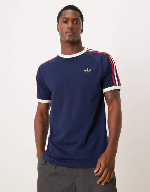 adidas Originals 3 stripe t-shirt in navy, red and white