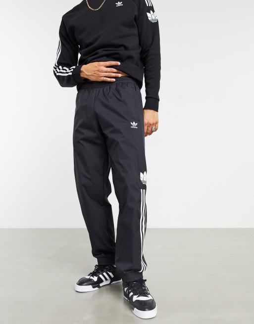 adidas Originals 3D trefoil three stripe joggers in black