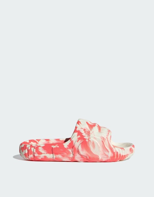 adidas Originals Adilette 22 slides in white and red marble