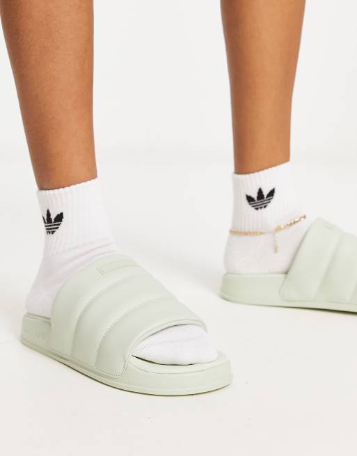 adidas Originals adilette essential sliders in sage green