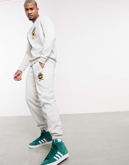 adidas Originals co-ord joggers with collegiate crest in grey fleece