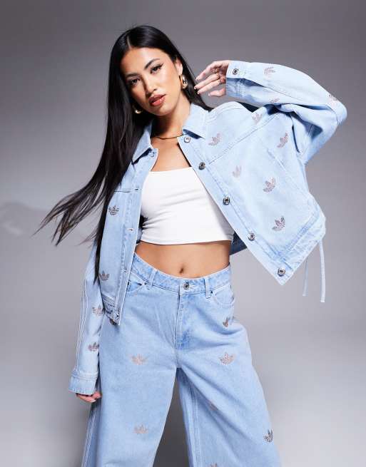 adidas Originals denim jacket with rhinestone embellishment in light blue
