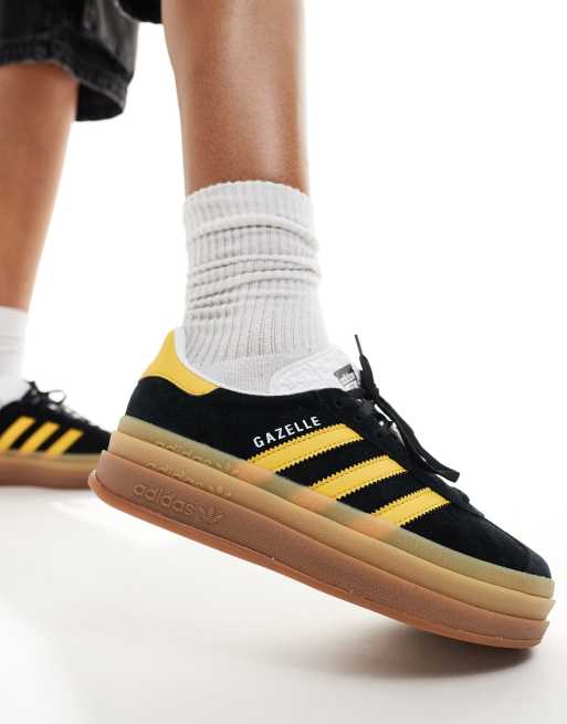 adidas Originals Gazelle Bold platform trainers in black and gold