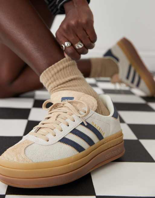 adidas Originals Gazelle Bold platform trainers in cream and navy