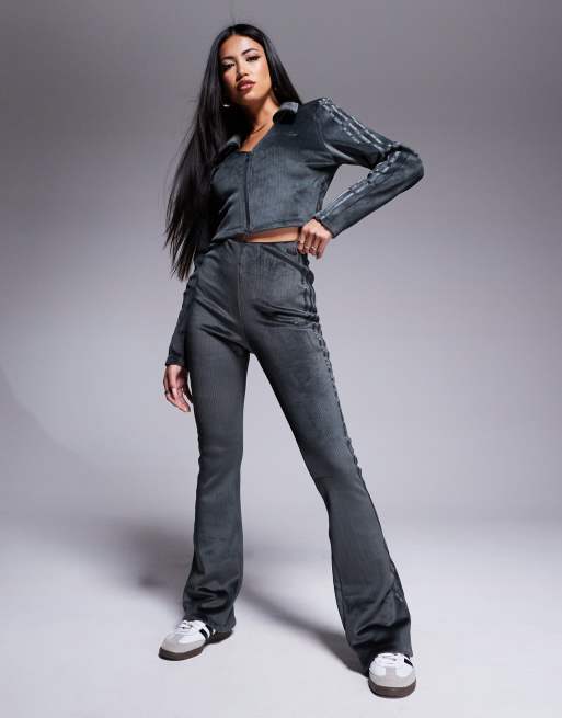 adidas Originals Hyper-Femme ribbed flared leggings in charcoal