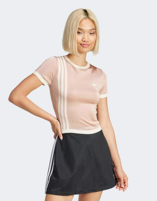 adidas Originals Knitted 3-Stripes Short Tee in beige