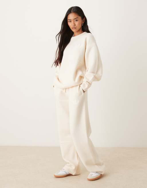 adidas Originals knitted wide leg track pants in cream