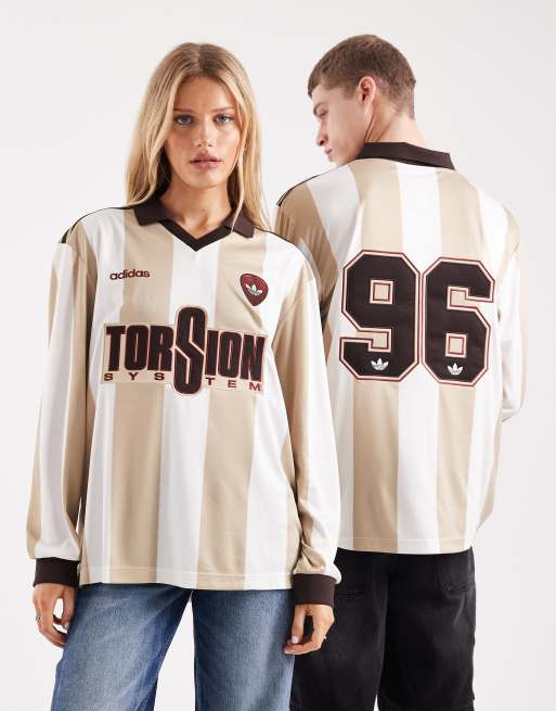 adidas Originals long sleeve 96 jersey in off white and stone stripe