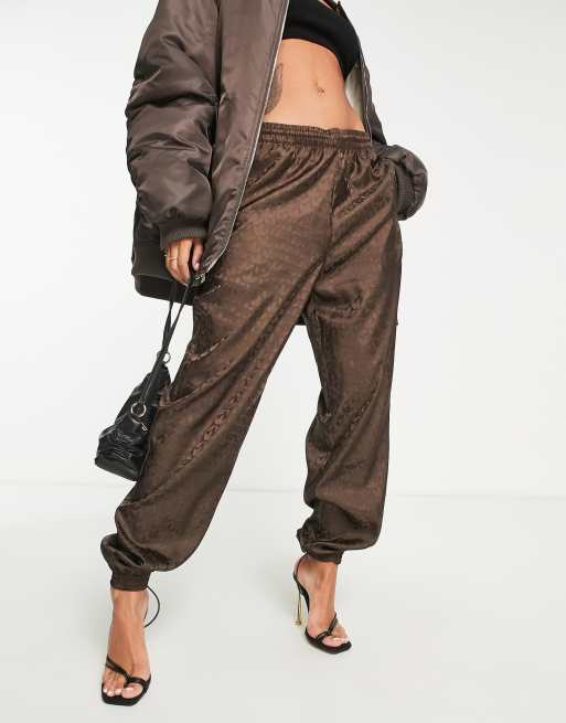 adidas Originals Luxe Lounge repeat logo woven joggers in brown