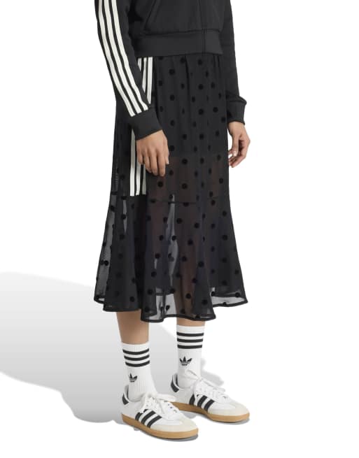 adidas Originals mesh polka dot midi skirt in black