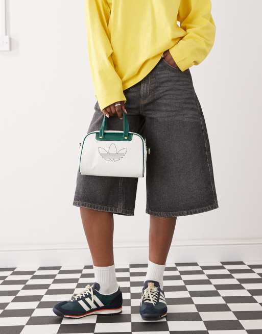 adidas Originals mini bowling bag in off white and green