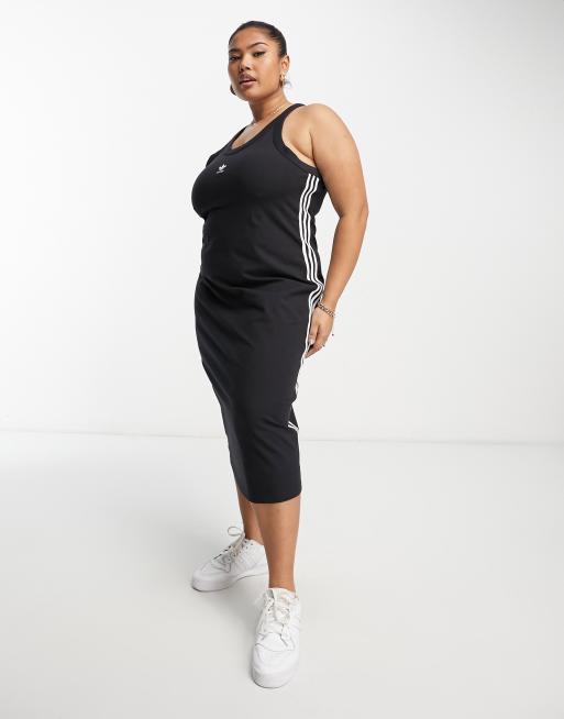 adidas Originals Plus three stripe sleeveless midi dress in black