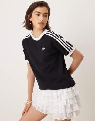 adidas Originals ringer t-shirt in black with ruffle 3 stripe