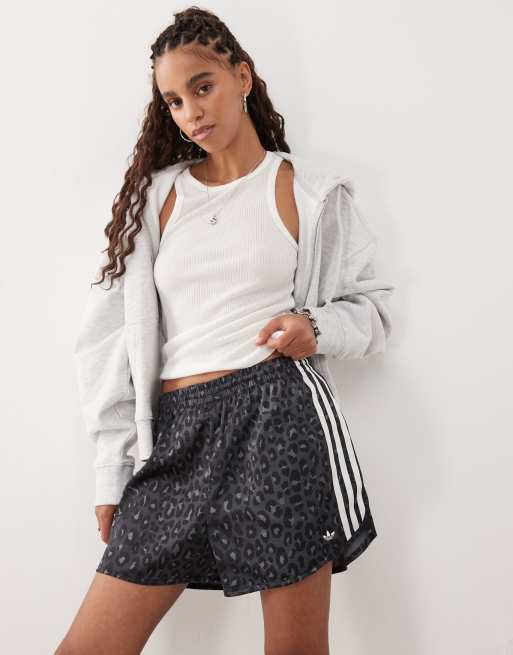 adidas Originals satin sprinter shorts in black leopard print