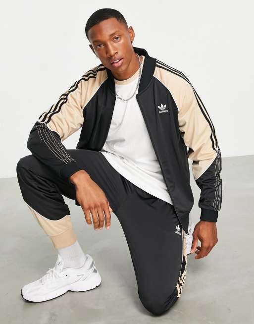 adidas Originals SPRT US trefoil 3 stripe track bomber in black